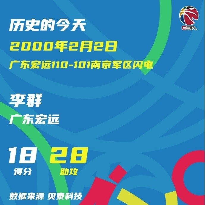 2月2日訊 2000年的今天,李群送出28次助攻,創(chuàng)造了CBA歷史的球員單場助攻紀錄。