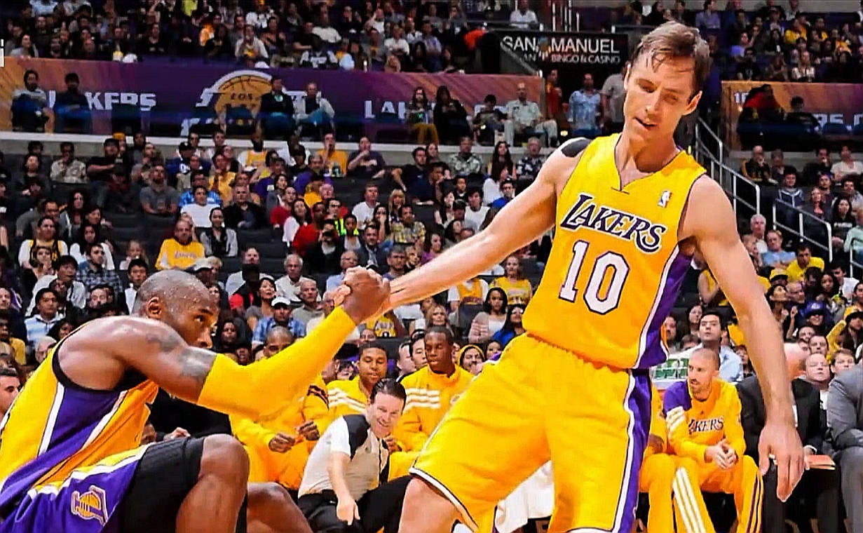 納什不僅和威少一樣都拿到過常規(guī)賽MVP,還比威少多一個(gè)。盡管這位兩屆MVP得主在加盟湖人時(shí)比威少更遠(yuǎn)離自己的巔峰期,但納什在當(dāng)時(shí)可能仍然是一個(gè)更具積極影響力的球員。2012年夏天,納什在剛剛結(jié)束賽季的MVP票選中排名第9,并且職業(yè)生涯第8次入選全明星,他仍然是聯(lián)盟中最強(qiáng)大的進(jìn)攻武器之一。傷病導(dǎo)致納什效力湖人的第一個(gè)賽季只打了50場比賽,但當(dāng)時(shí)這位已經(jīng)38歲的老將場均仍然能貢獻(xiàn)12.7分6.7助攻,三項(xiàng)投籃命中率分別為49.7%/43.8%/92.2%。接下來的一個(gè)賽季是納什職業(yè)生涯的最后一個(gè)賽季,背部和腿部的傷病使他無法與科比繼續(xù)并肩作戰(zhàn)。